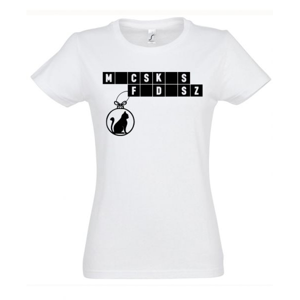 Macskás fadísz fehér női póló